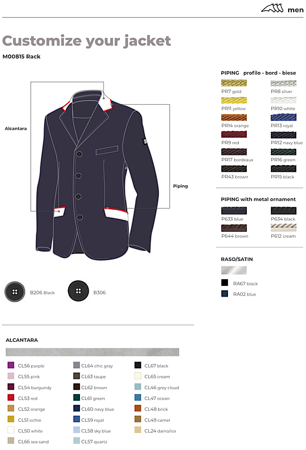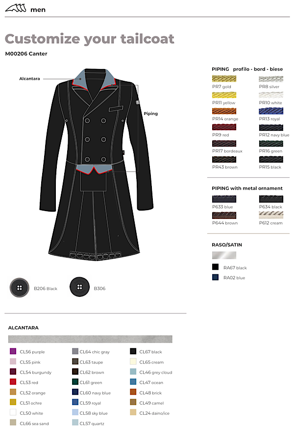 EQUILINE メンズジャケット/メンズドレッサージュコートのボタンをカスタマイズ出来ます。シンプルなシルバートリミング、プレーンの2種類。