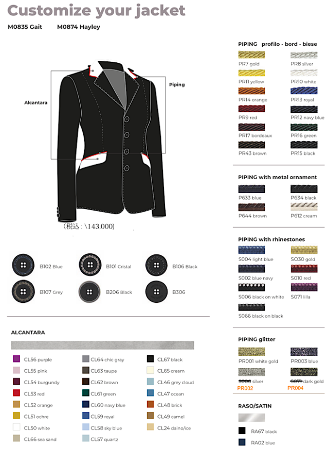 ★下記の「EQUILINEオーダー商品、ご注文に際してのご案内」を必ずご確認下さい。