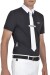 速乾性、通気性、伸縮性に富んだテックピケ素材の競技用半袖ポロシャツ。背中部分は暑い季節に嬉しいマイクロホール仕様。ボタンダウンカラーで、ネクタイ留めは取り外しが可能。ナイロン72%、ポリウレタン28%。色:ネイビーブルー、ブラック。サイズ:XS、S、M