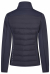 サイドと袖は内側が起毛して暖かなソフトシェル生地、前と後はファイバーボール中綿を使用したナイロンキルティングで保温性に優れ、通気性と伸縮性に富み、雨風を通さない軽量ハイブリッドジャケット。フロントは2wayジップ、ジップポケット付き。腕に立体ロゴラベル、前後にさりげないロゴプリントを施したスポーティなデザイン。色/ドイツサイズ:ナイトブルー/36、ディープカーキ/36。ナイロン90%、ポリウレタン10%。