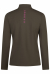 伸縮性と速乾性に優れた高機能生地を使用。表面はハリのあるしっかりした手触り、内側は起毛して肌触りの良く、暖かいフロントジップのハイネックシャツ。背中と袖にロゴ刺繍を施したスポーティーなデザイン。色:ナイトブルー、ディープカーキ、ブレイズベリー(ピンク)。ドイツサイズ:34、36、38。88%ポリエステル、12%ポリウレタン。